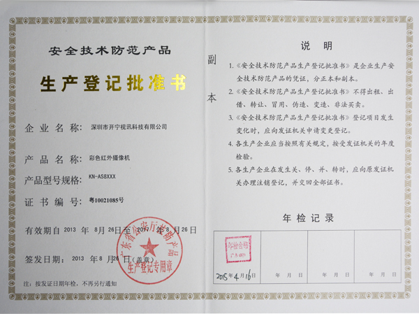 生产登记批准书