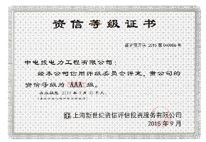 公司拥有电力工程总承包一级、对外工程承包经营一级、监理甲级、调试甲级、设计乙级和工程咨询、招标代理等资质,是国家“高新技术企业”、“标准化良好行为AAAA级”企业、电力行业“AAA”级信用企业,获得了国家和国际权威机构颁发的质量管理体系、职业健康安全管理体系、环境管理体系三项认证。