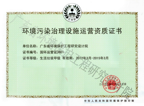 环境污染治理设施运营资质证书